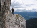 …und auf der anderen Bachseite wieder ganz hoch zur Katzenleiter. (IMG_7398.JPG) | Im Vomper Loch, einer der einsamsten Gegenden im Karwendel. (IMG_7414.JPG) | Das letzte Bild des Tages. Von hier sind es noch 4 Stunden Qälerei hoch zum Überschalljoch - bei strömenden Regen und Käte. (IMG_7432.JPG) | Am nächsten Tag auf der Halleranger-Alm sind die Strapazen fast vergessen. (IMG_7445.JPG) | Wir planen eine kurze Tagestour, weil Hans-Peters Knie angeschlagen sind. (IMG_7450.JPG) |