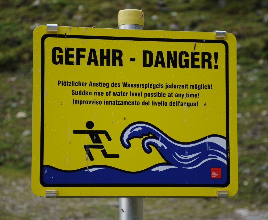 Lustiges Schild. Im Sonnenschein kaum zu glauben, aber es steht sicher nicht ohne Grund hier.